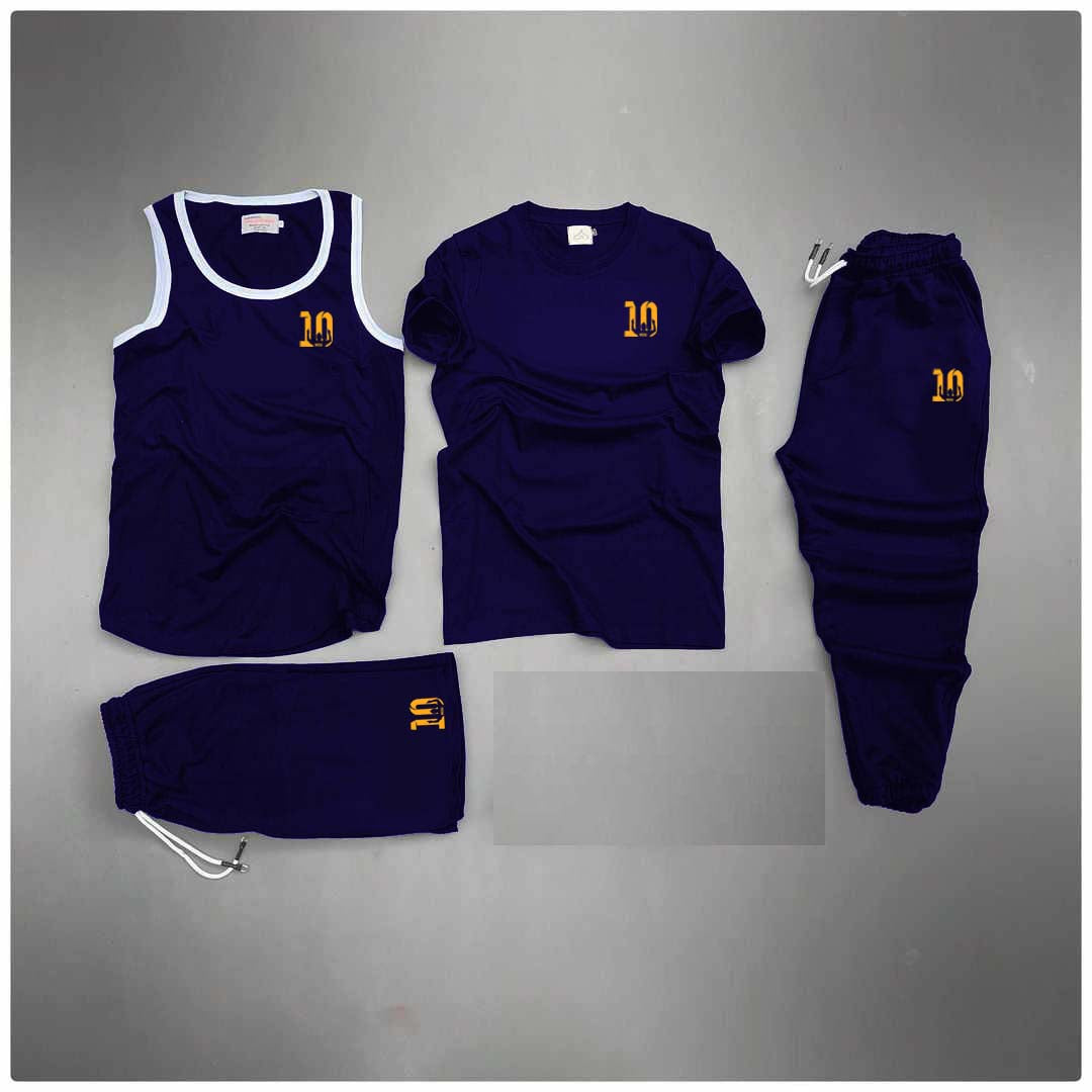 Blue Messi-10 Logo Printed Bundle Of 4 Dry-Fit Complete Summer Deal.
