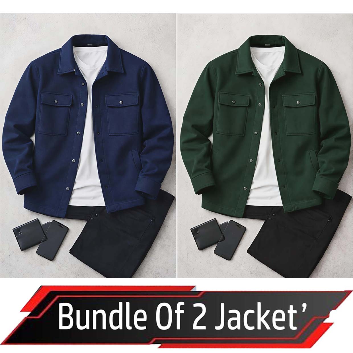 Bundle Of 2 4-Pocket Collar Style Casual Fleece Winter Button Jacket. MWJ-401 V4