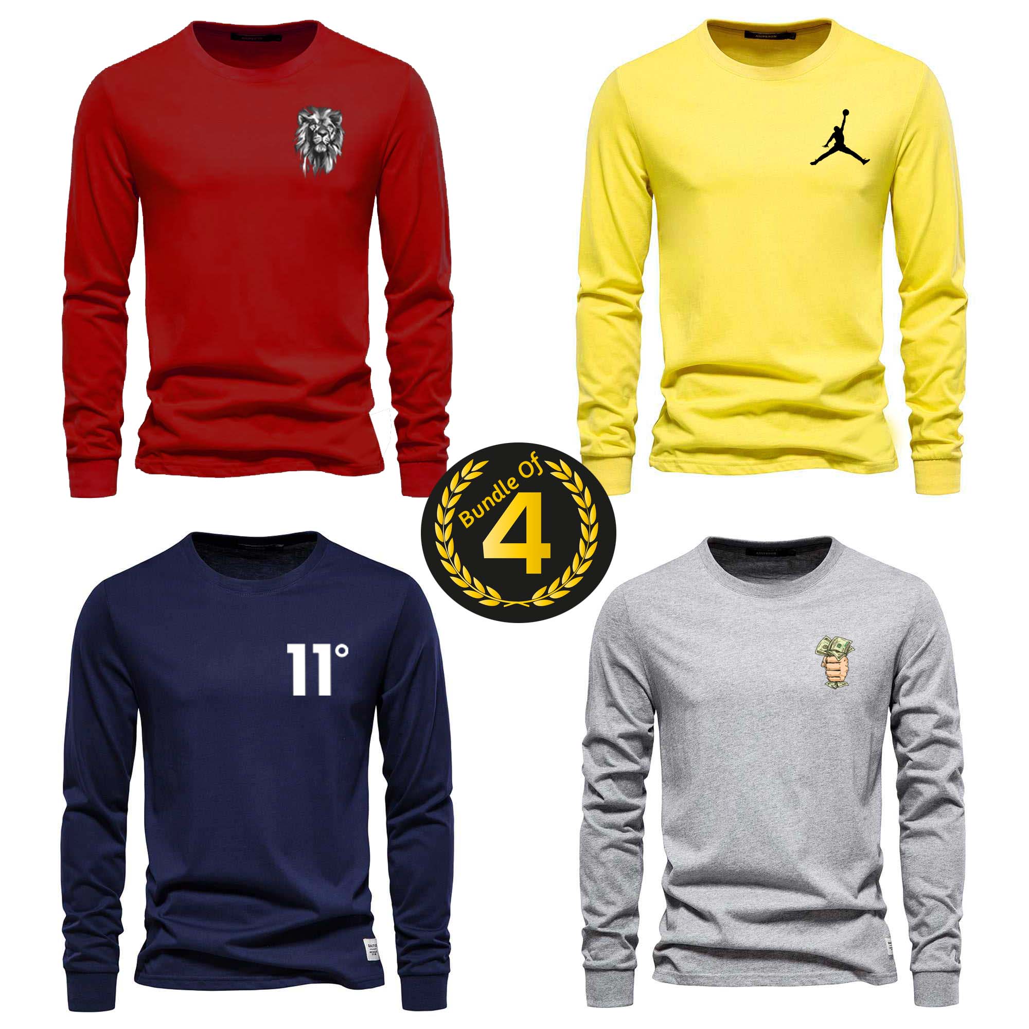 Bundle Of 4 Sweat-Style O-Neck PL Full Sleeve Tshirt For Summer's.