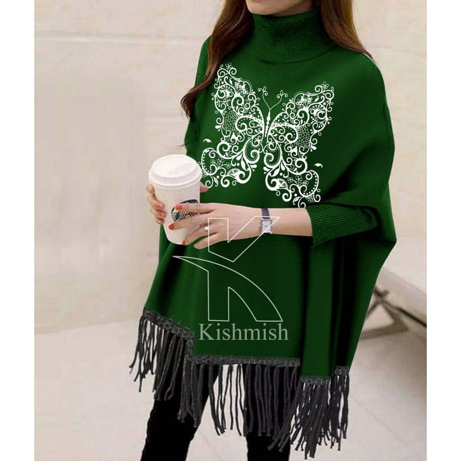 Butterfly Printed Bat-Wing Style Viscose Poncho.