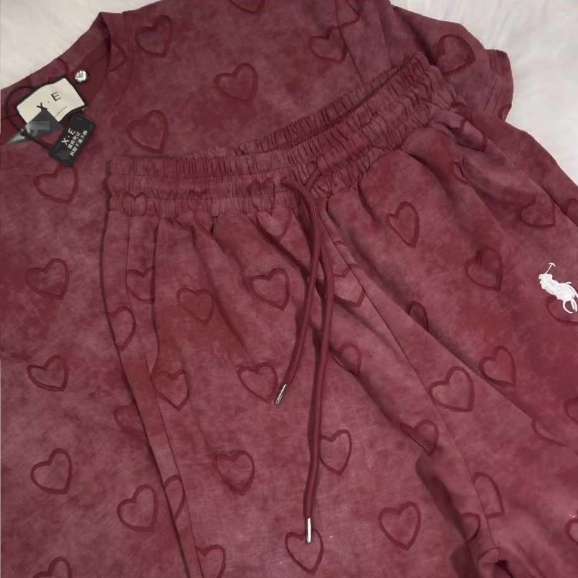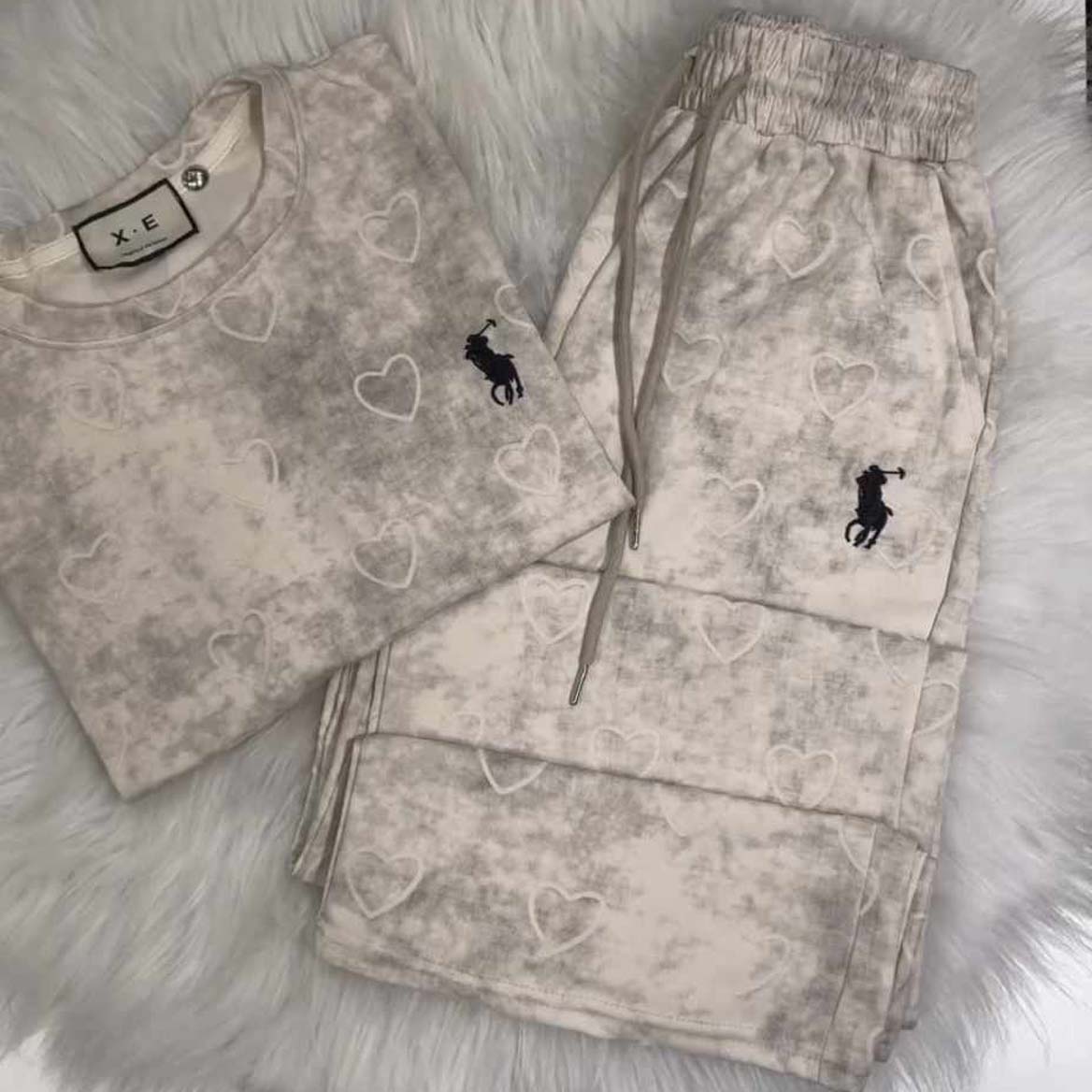 Heart Textured Horse Logo Printed Style Western 2-Pcs Summer Tracksuit For Her. WSTS-08