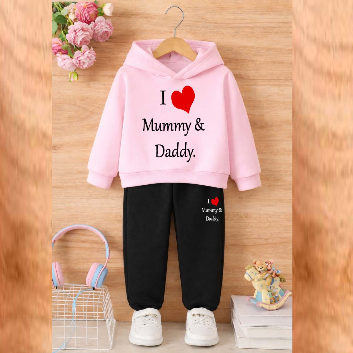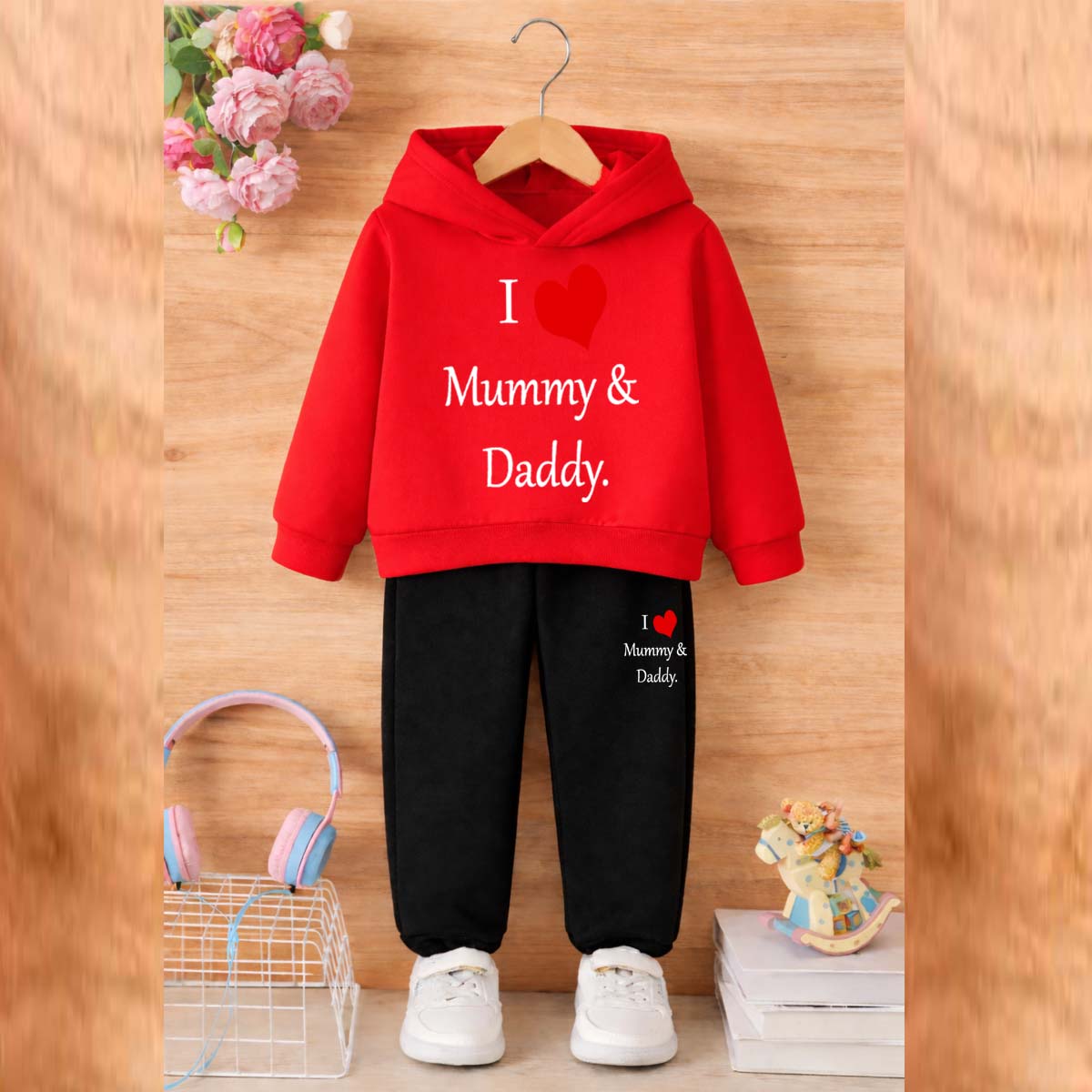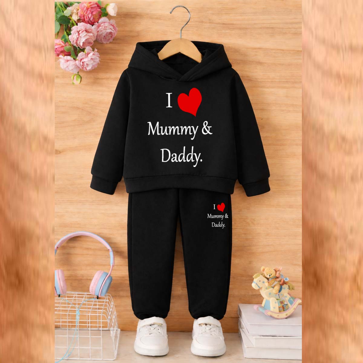 I Love D+M Kids Hoodie Style 2-Pcs Winter Tracksuit. KWTS-01