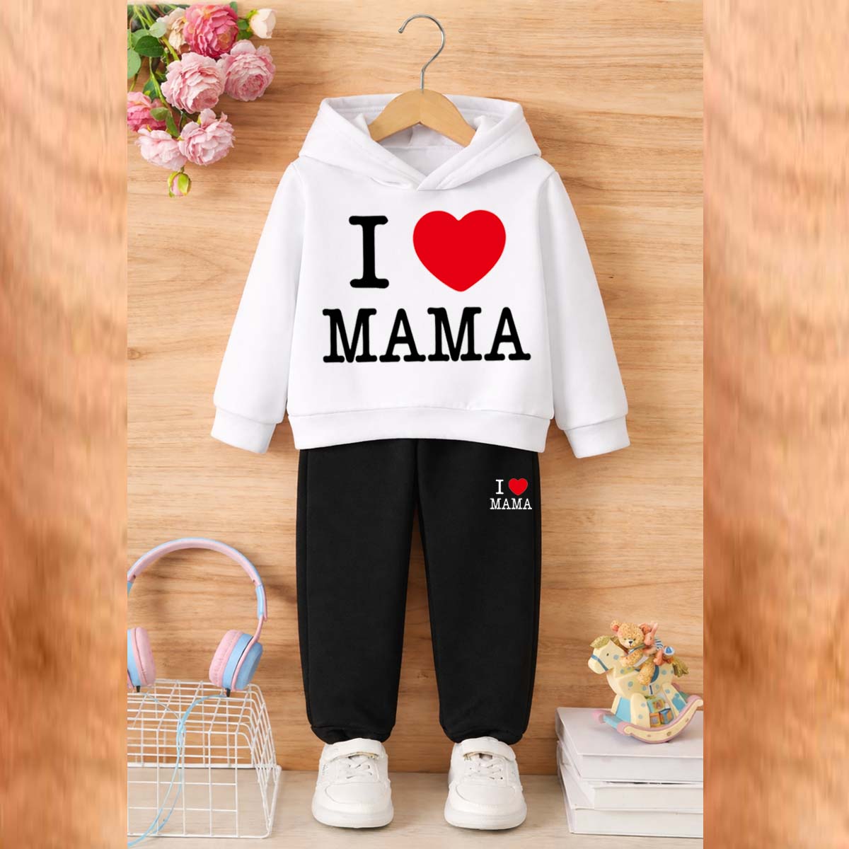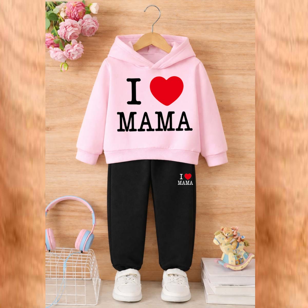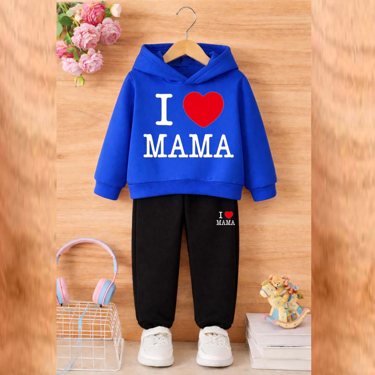 I Love MAMA Kids Hoodie Style 2-Pcs Winter Tracksuit. KWTS-01