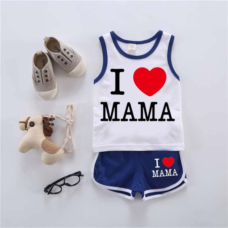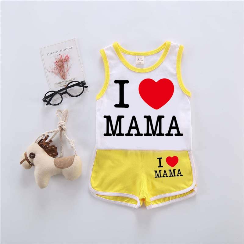 I Love MAMA Kids Sando Style 2-Pcs Summer Suit. (SD+SH)