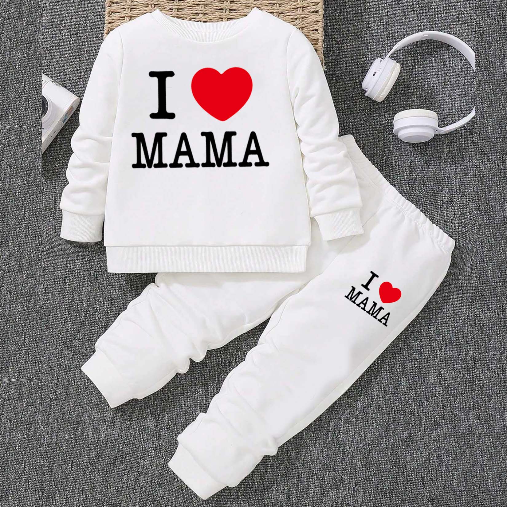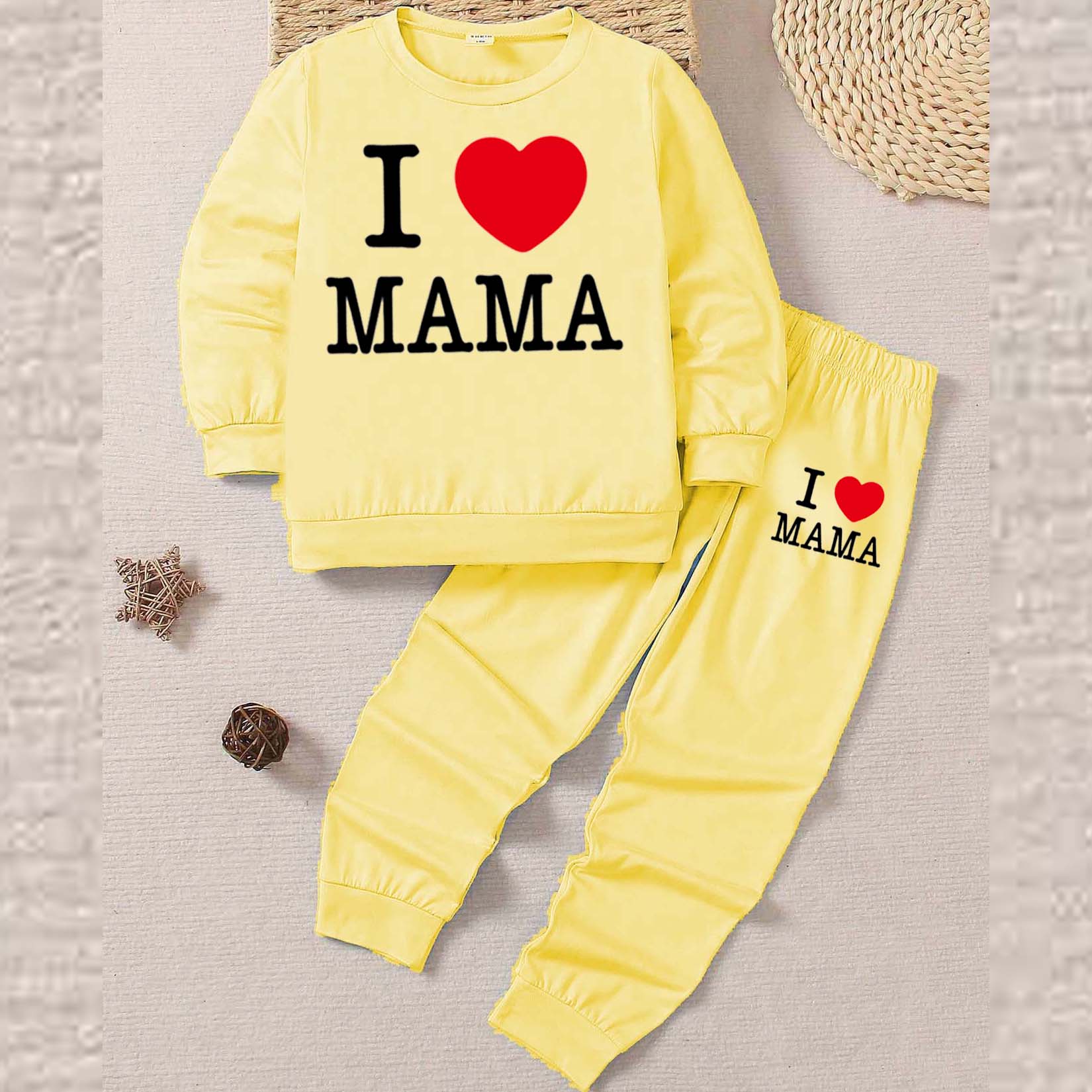 I Love MAMA Kids Sweat Style 2-Pcs Summer Suit. (FTS+TR)