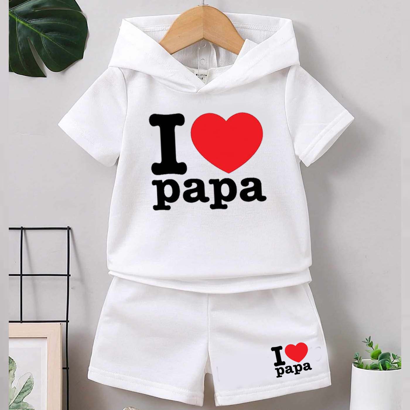 I Love PAPA Kids Hooded Style 2-Pcs Summer Suit. (HOTS+SH)