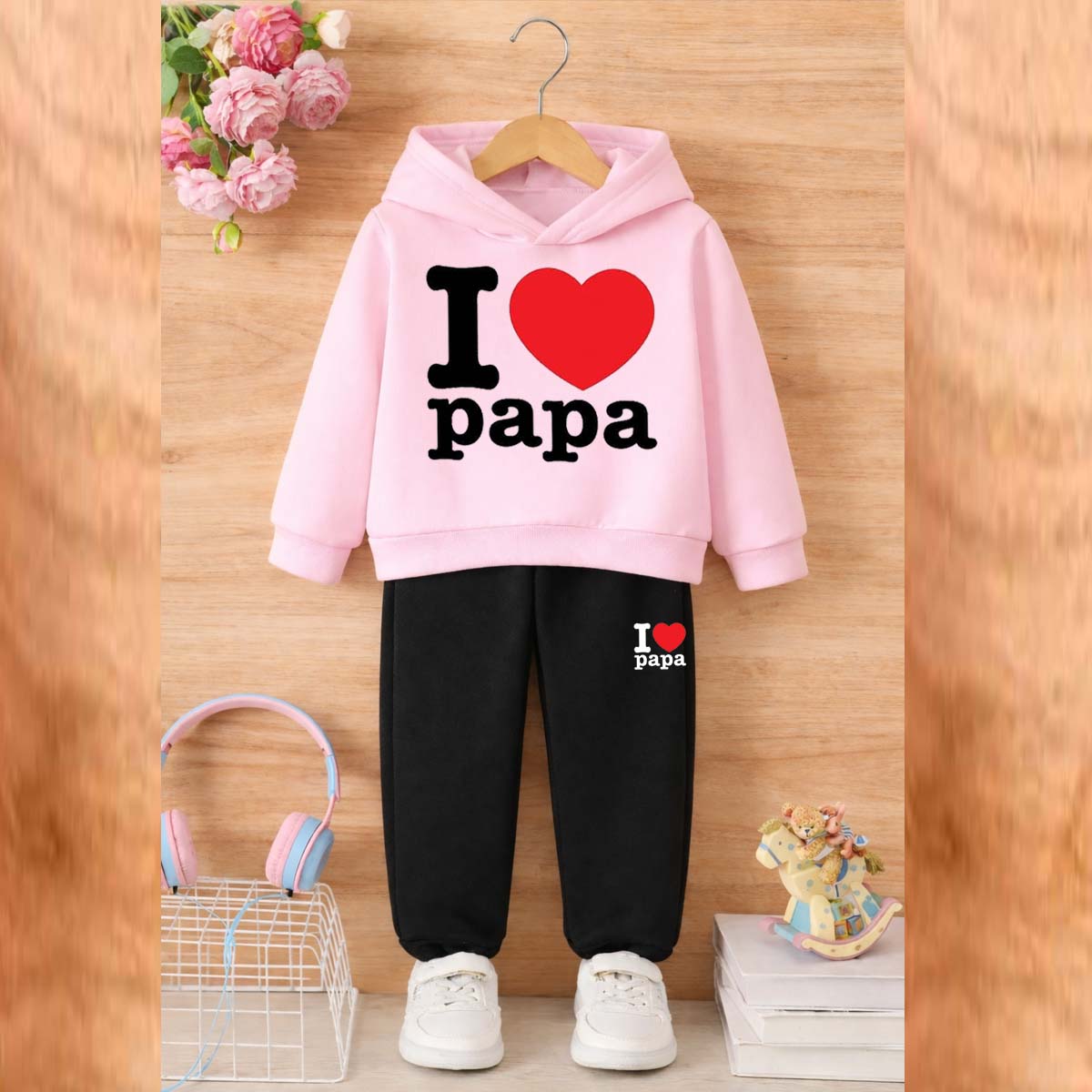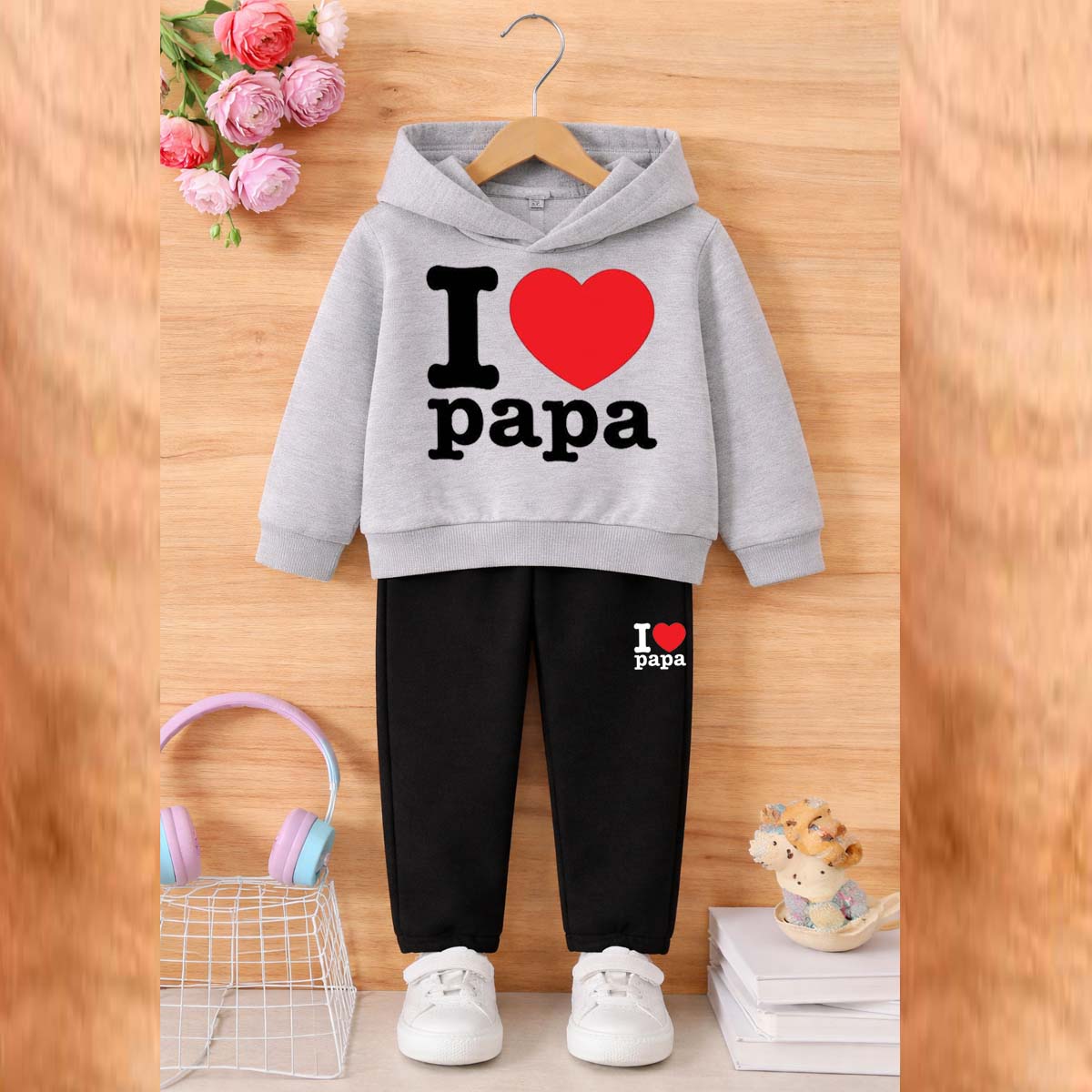 I Love PAPA Kids Hoodie Style 2-Pcs Winter Tracksuit. KWTS-01