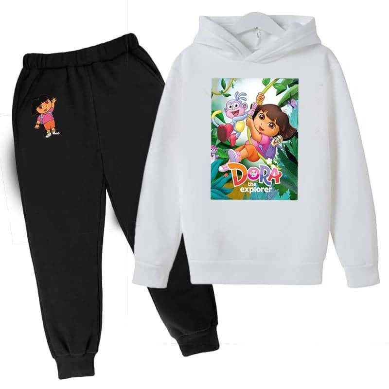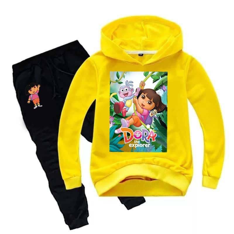 Kids Dora  Printed Hoodie Style 2-Pcs Winter Track-Suit.