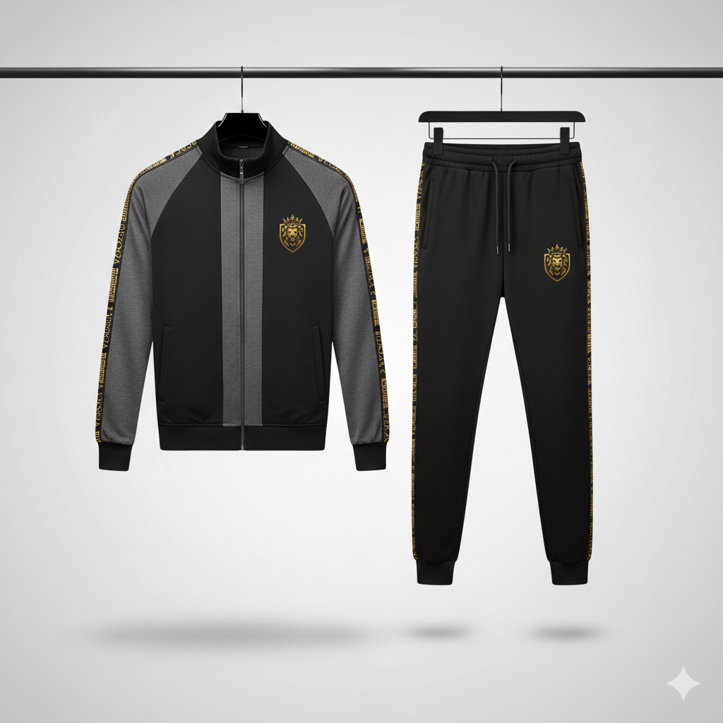 Lion Printed Patch-Work Jacket Style 2-Pcs Winter Tracksuit. D-22 V2