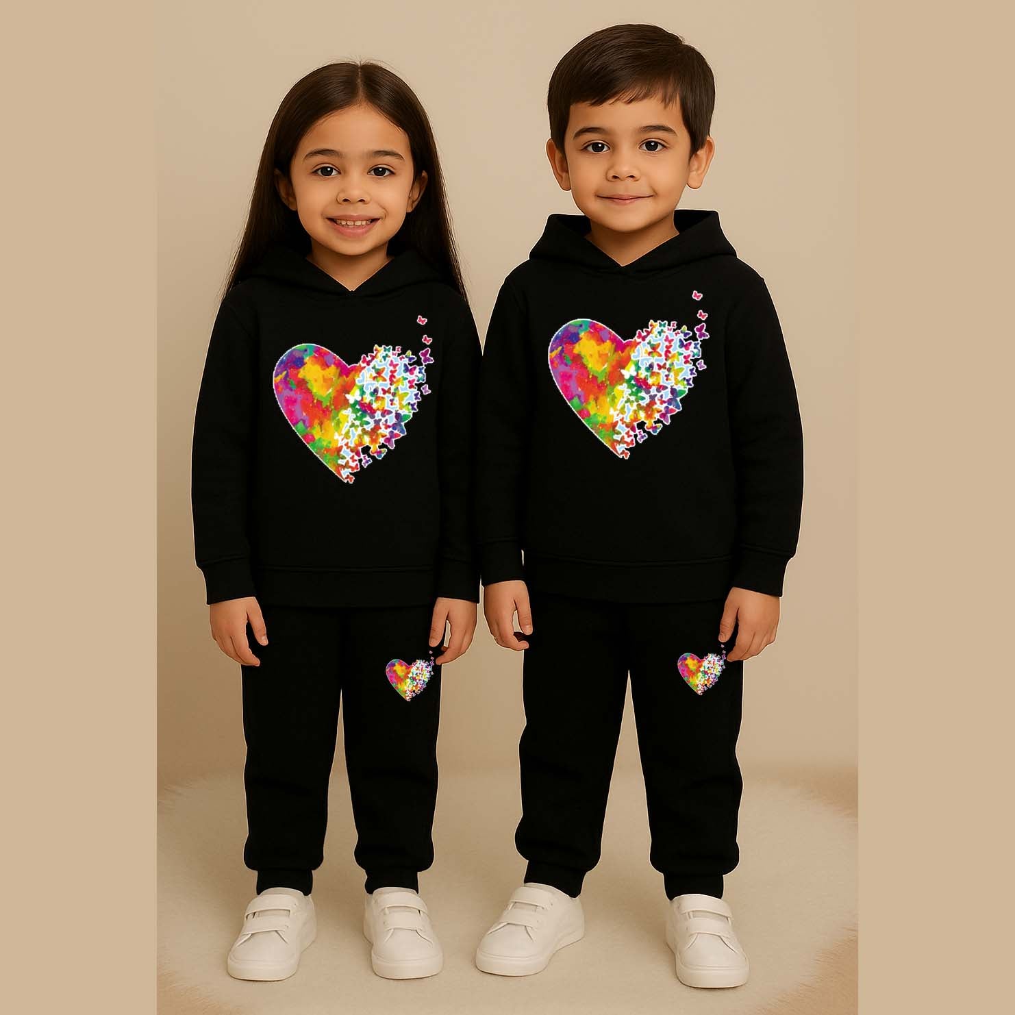 Multi-Heart Kids Printed Contrast Hoodie Style 2-Pcs Winter Tracksuit.