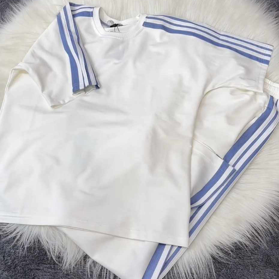 White Drop-Shoulder Stripe Style 2-Pcs Summer Dry-Fit Tracksuit For Her. WSTS-04